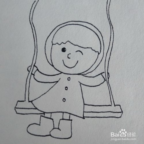如何画一个在荡秋千的小女孩卡通儿童简笔画