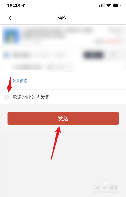 点击后,选择催付的类型,比如承诺24小时内发货,之后,点击发送。