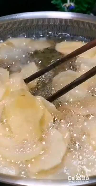 最后起锅烧油,放入土豆片炸至两面通透即可,出锅的时候撒上准备好的调料抓拌均匀就可以了