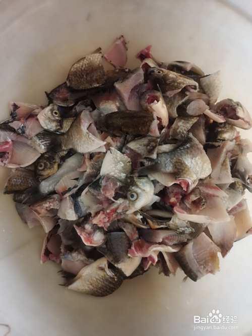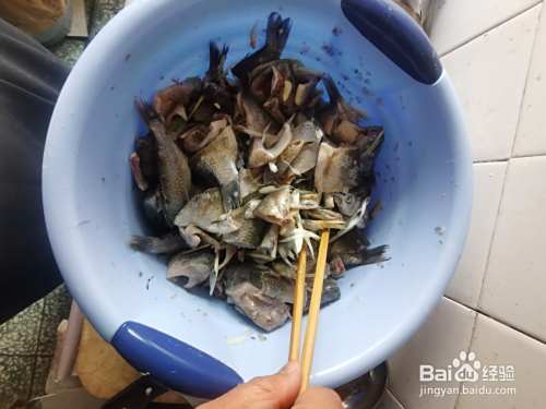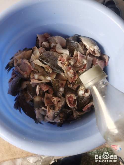 收拾好的鲫鱼放入准备好的盆中,加入白酒、葱、姜、蒜、十三香;