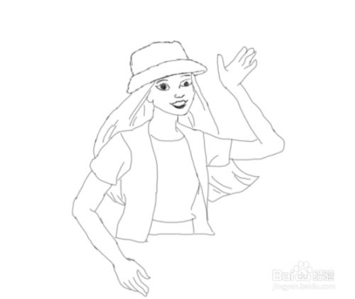 在帽子的下面我们画出美女的头发,然后在头发的基础上再画出美女的面部,如图所示: