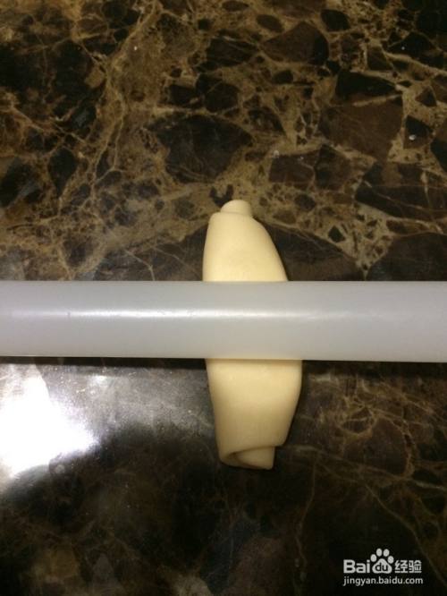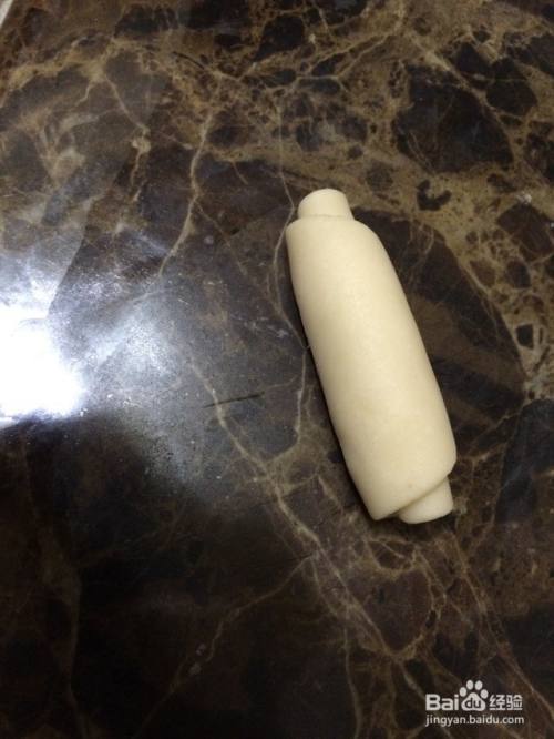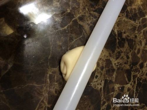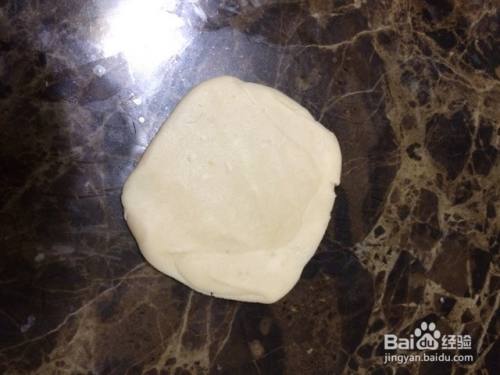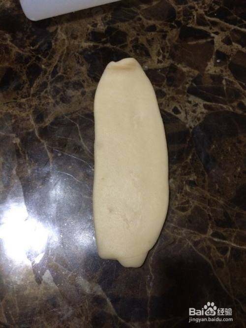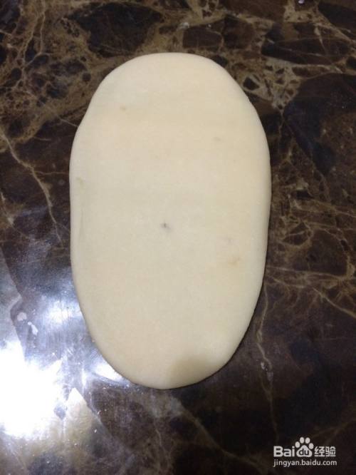 8包好的面团收口朝下,用擀面杖擀成椭圆形