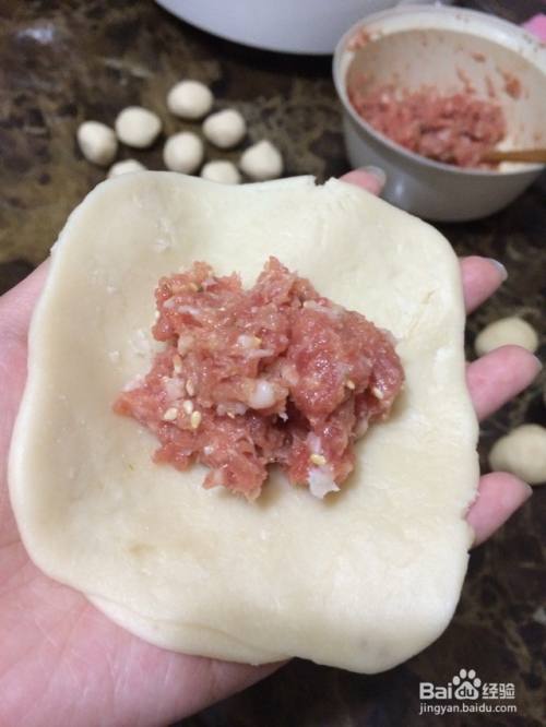 16包好的面团,包的时候,收口不能沾肉馅,否则就粘不上去了