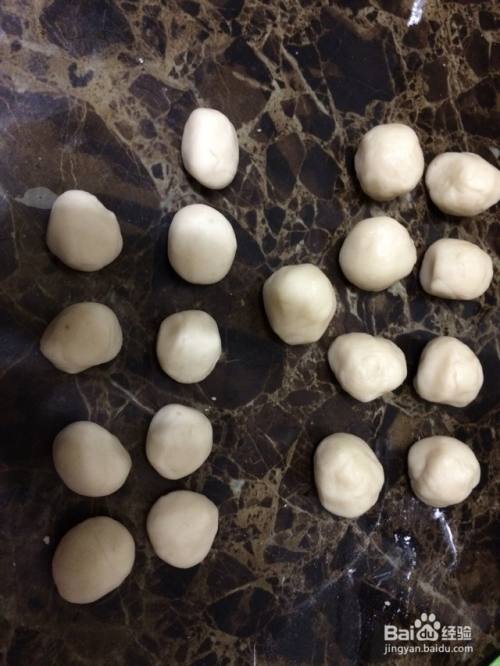 5将水油皮和油酥面团分别分成大小均等的9份,并静置松弛15分钟