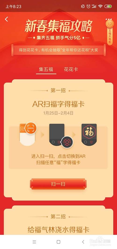 今年集五福是有4种形式,第一种“AR扫福”,这个形式大家都很熟悉,手机扫一扫即可;