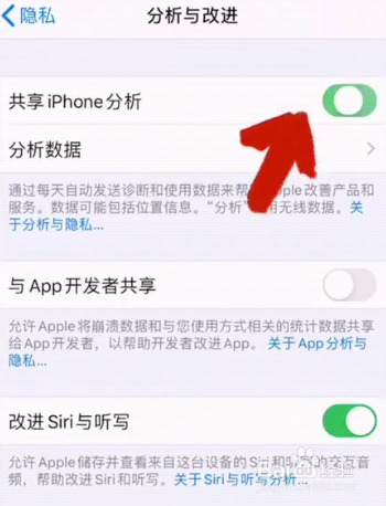 返到上一层进入隐私,翻到最下面的分析与改进。