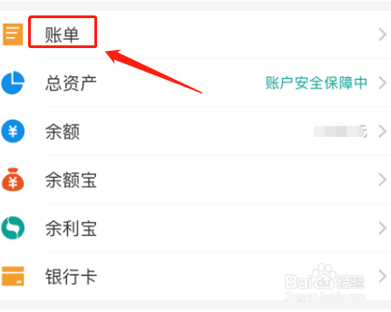 在支付宝我的界面陵召披中我们找到账单的选项,点击账单就可以进入了,然后在这里选择要删除的账单。