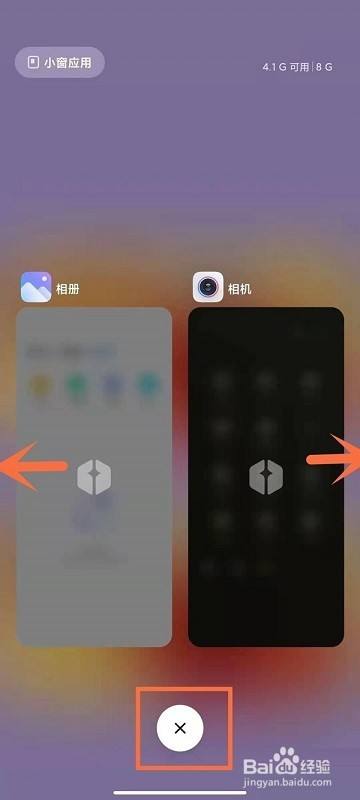 手指向左或者右滑动可以单独关闭应用,或者点击下方的【×】可关闭所有后台应用。如程序被锁定,长按应用,点击解锁图标就可以了(如图所示)。