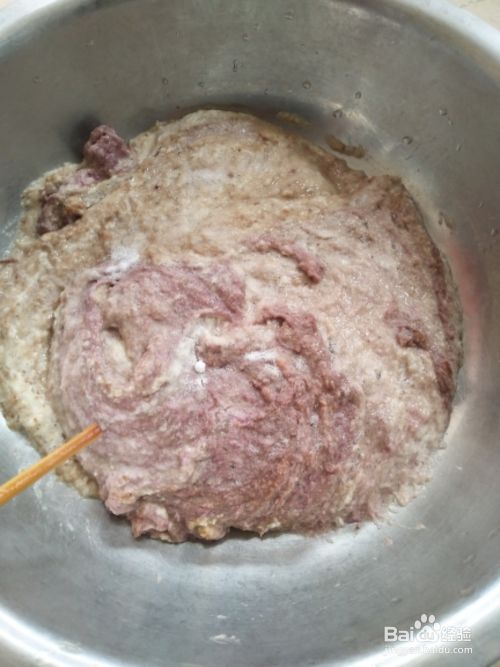 第三步:放入适量的食盐到大毛薯浆里面,然后搅拌均匀,如下图所示。