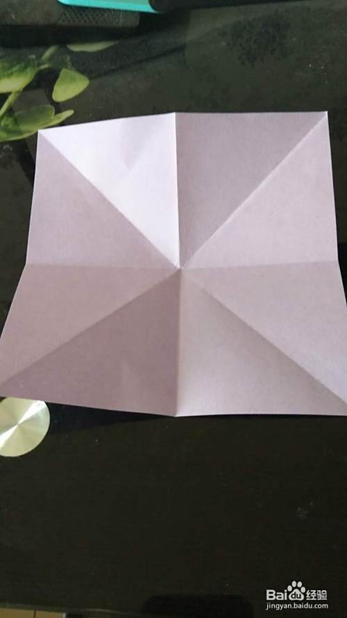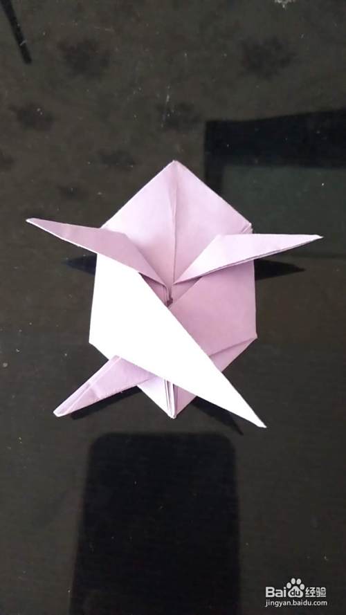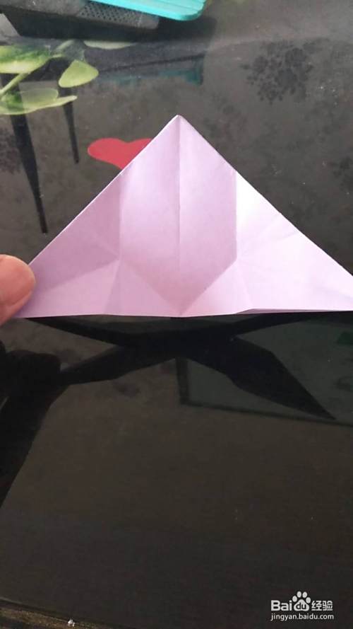 另一面的两个角捏合之后,分别向对向左下、右下翻折。如图。