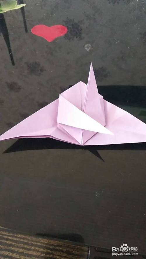 根据折痕,将两个角捏合在一起后,向上翻折。