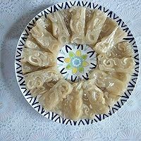 冷却好的猪皮冻脱模,按自已喜欢的大小切成薄片摆入盘中。