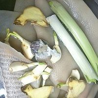 另起锅倒入清水,放入猪皮、葱姜蒜、料包(花椒、八角、香叶用干净纱布包起或放入调料笼)。