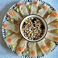 把蘸料放入猪皮冻中间,边上用小青红椒切圈作装饰即可。