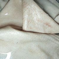 把猪脊皮洗净,刮掉内部多余油脂、猪毛。