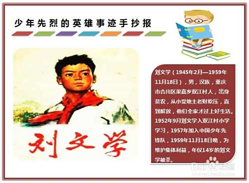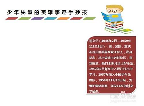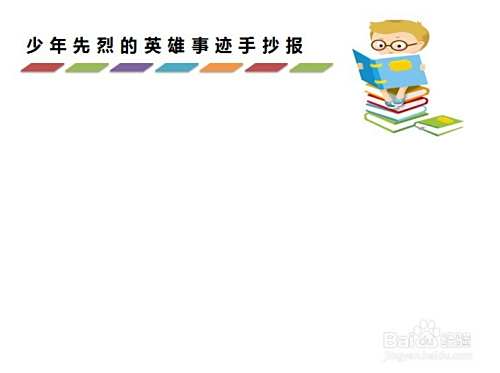 最后,在【少年先烈的英雄事迹手抄报】标题的下方左侧处,画出少年先烈的英雄事迹的相关内容及外框线,如下图所示。