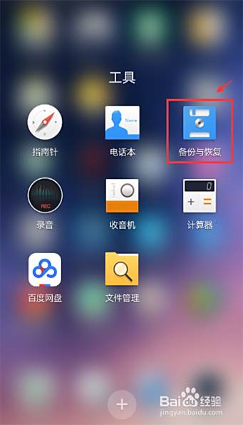 在手机应用中,打开【备份与恢复】。