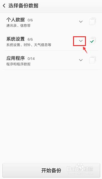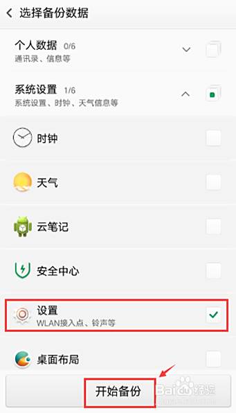 进入选择备份数据页面,选择要备份的,点击【系统设置】。