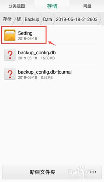 进入今天备份的文件夹,点击【Setting】。