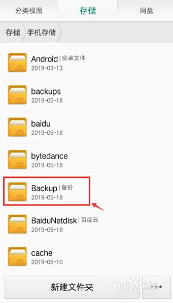 进入文件管理页面,往下滑动页面,找到【Backup】备份文件夹,点击打开它。