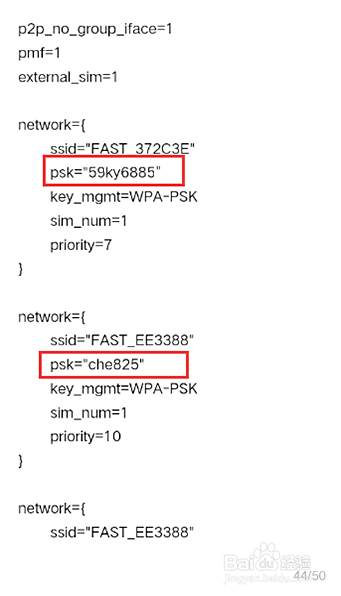 打开文件后,往后翻页,找到psk,它后面的就是连接的WIFI密码。