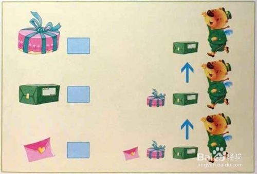 分析能力:小笨熊当了一天的邮递员,仔细观察它手里的邮件,根据它送邮件的顺序在□里填上正确的序号。