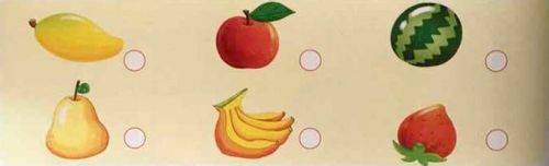 分类能力:下面的水果哪些是长在树上的,哪些是长在地上的?请把长在树上的水果右侧的“O”涂上蓝色,把长在地上的水果右侧的“O”涂上红色。