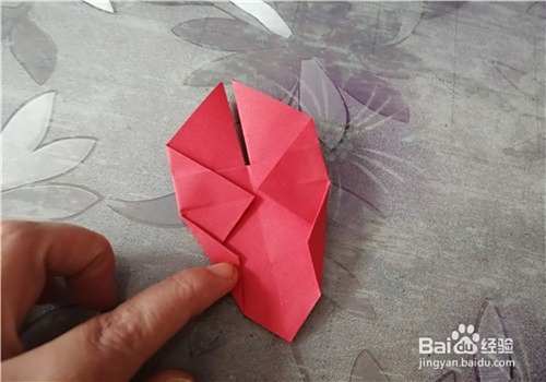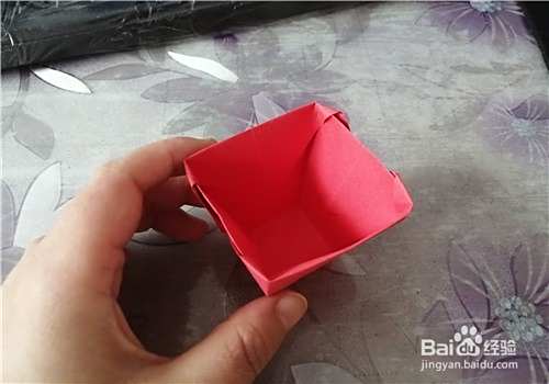 我们把上面的角折到杯子的里边,再把中间撑起来就可以了。图二是完成图。