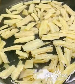 首先将腐竹泡发后切成小段,水开下锅,迅速捞出