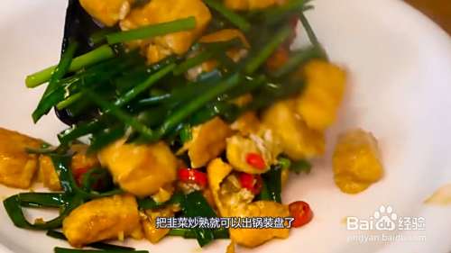 锅中放入鸡蛋豆腐煎,煎好捞出备用,锅中油的放入准备好的调料,翻炒均匀后放入煎好的豆腐,把豆腐煮入味放入韭菜翻炒均匀即可出锅。
