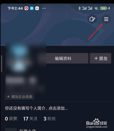 在抖音中,点击右上角的三图标。
