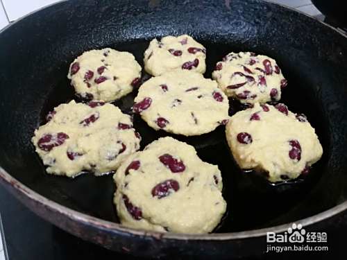 平底不粘锅倒入食用油,油热,用手做成玉米饼摆放至锅中,倒入半小碗水,盖上盖,中小火烙制。
