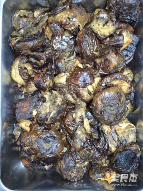 6水分压的差不多了,在锅里放油,酒上花椒,八角,然后放入茄子,反复煎,直到如图中所示便可出锅!