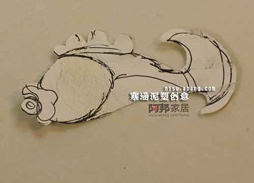 2这就是利用纸样,贴在泥片上,用刀划出来的鱼形。其中一个已经加了嘴,注意嘴中间要戳出个洞。