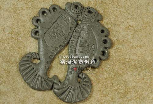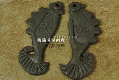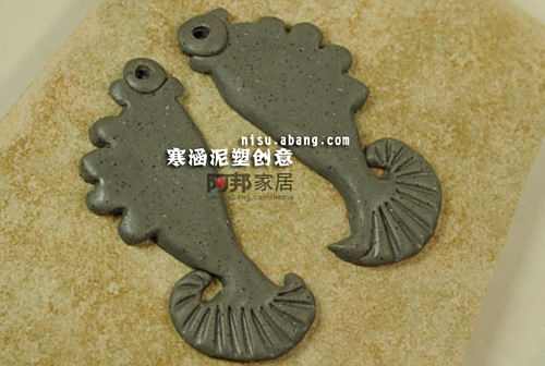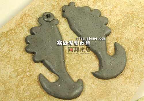 大家往往害怕做一对的作品,因为不管怎么认真,都没办法做成一模一样的,这不,双鱼就必须得一样,于是拿个硬点的名片背面画个鱼形,然后剪下来放在泥片上,刻出来就成啦。这次用的是软陶泥里的岩石泥,很逼真的效果,自然的纹路增加了双鱼的魅力。作品中留了这么多的眼儿和洞,是为了以后再创造留着的,可以挂其他饰物,也可以拴挂绳......