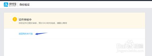 点击【返回我的支付宝】,在跳转的新页面静待一会儿,即可收到通过认证的消息。