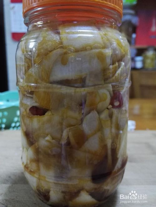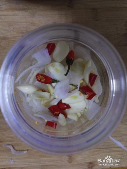 继续加入萝卜后,压实,然后先后加入食盐、白糖、醋和酱油,盖好盖子,放阴凉处放置一个星期后即可食用