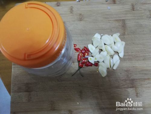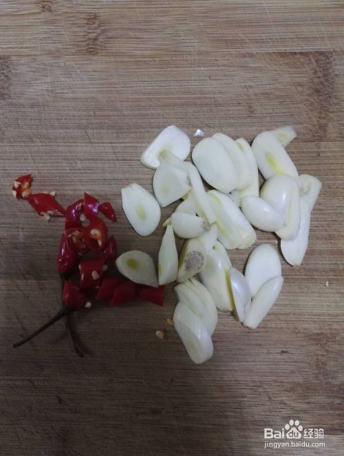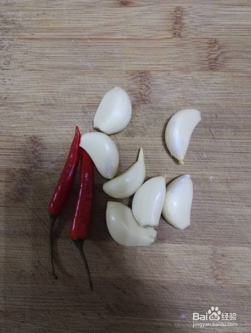 将大蒜剥皮,辣椒洗干净,切细后备用。