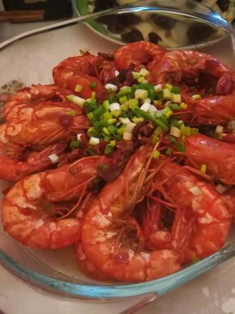 油锅放葱姜蒜,郫县豆瓣酱,干辣椒,小火炒出香味放虾,用大火爆炒,放蒸鱼豉油和耗油调味起锅。