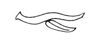 先画出桃子的枝干部分和一片叶子,两根粗粗的线条就可以了。