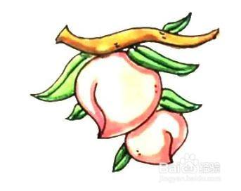 再画上一颗比较小的水蜜桃,添上叶子。