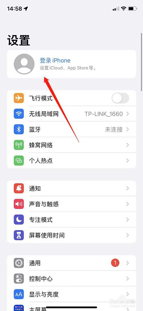 在手机上打开系统设置,点击顶部的登录iphone账号。
