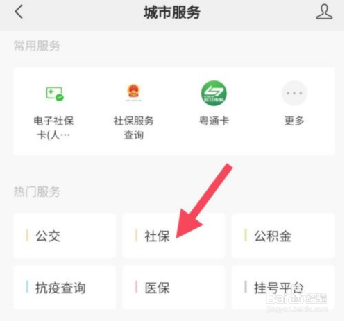 第四步、进入城市服务,点击【社保】。