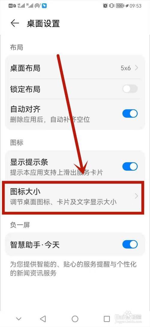 第四步:在页面上找到【图标大小】,点击设置自己想要的大小即可。