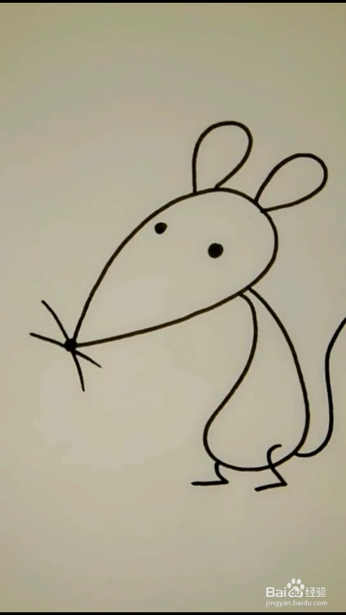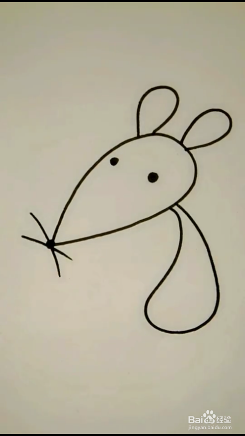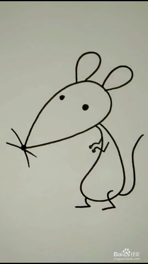 接着画出小老鼠的眼睛,鼻子,胡须,如下图所示。