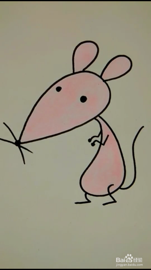 最后为小老鼠涂上颜色,如下图所示。这样小老鼠就画好了。