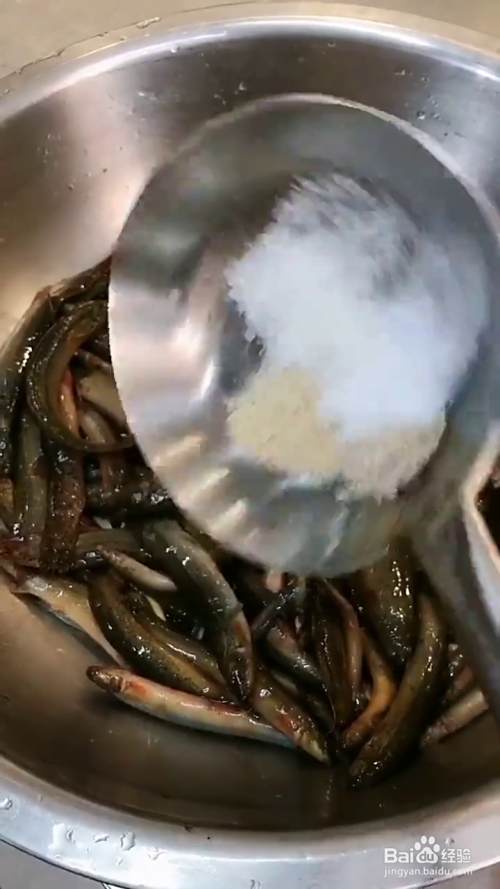 我们将泥鳅放入盆中,加入食盐好好抓拌一下,用清水洗去表面的黏液,控干水分后加入适量的盐,味精,鸡粉,胡椒粉,料酒抓拌腌制十分钟左右