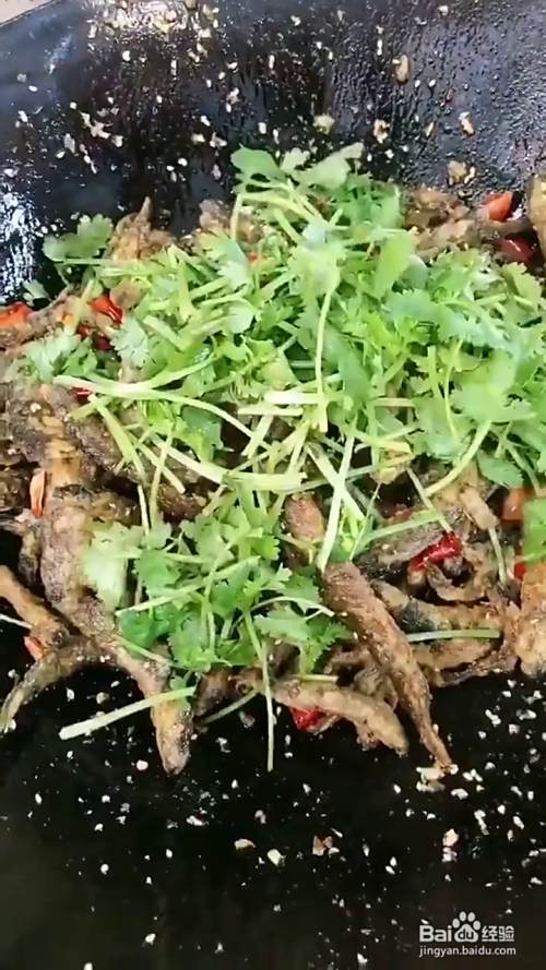 锅中再放入适量的辣椒油和麻椒油,下入葱蒜和干辣椒爆出香味,接着放入泥鳅鱼翻炒均匀,加入适量的盐,味精,鸡粉调味,最后放入芝麻和香菜翻拌均匀即可开吃啦