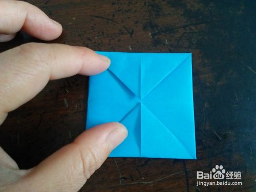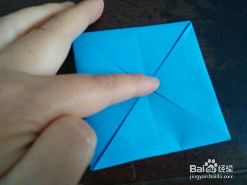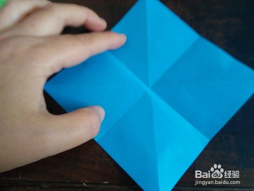 我们先把正方形彩纸的中间折出个米字型,如图。
