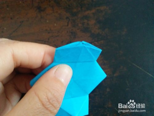 把上边的两个角向内折,如图一。然后再把角折到彩纸的内部,如图二。